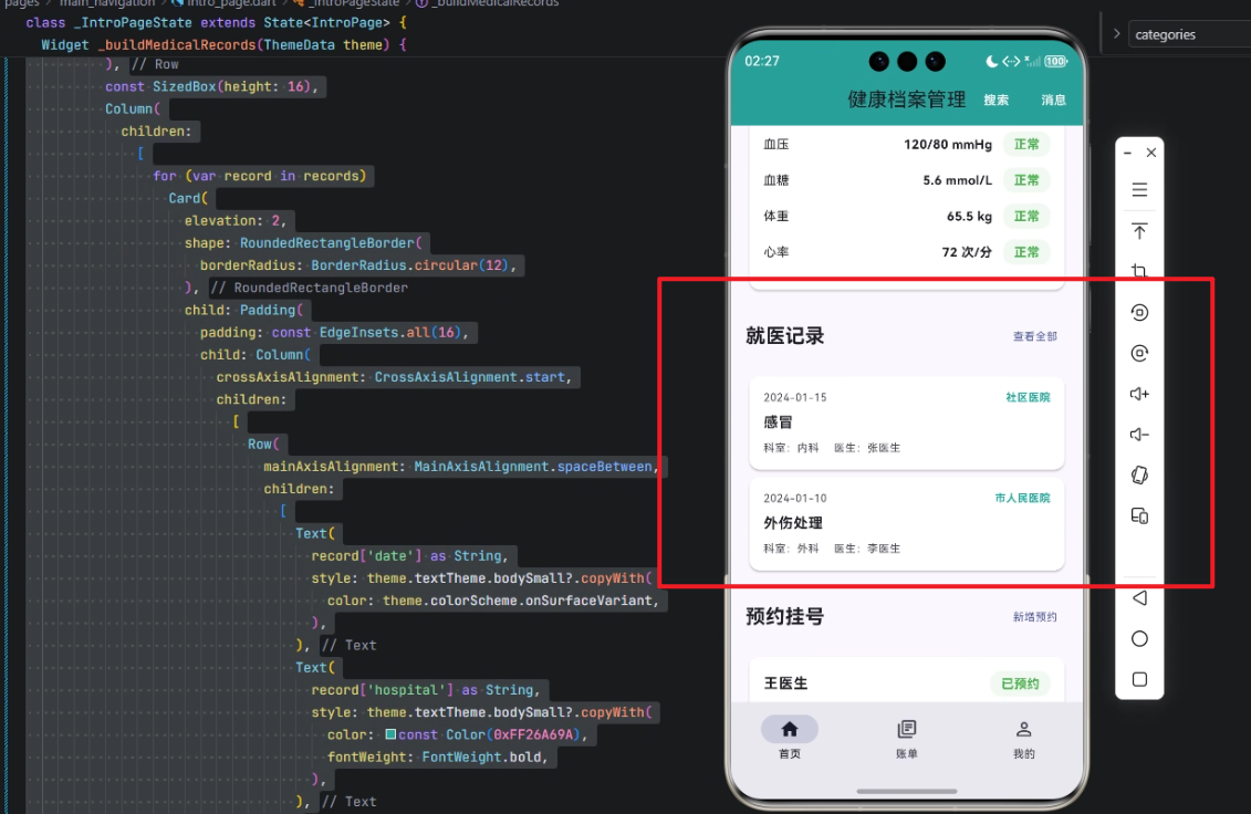 下面我们来详细拆解 就医记录展示组件 _buildMedicalRecords 的实现。