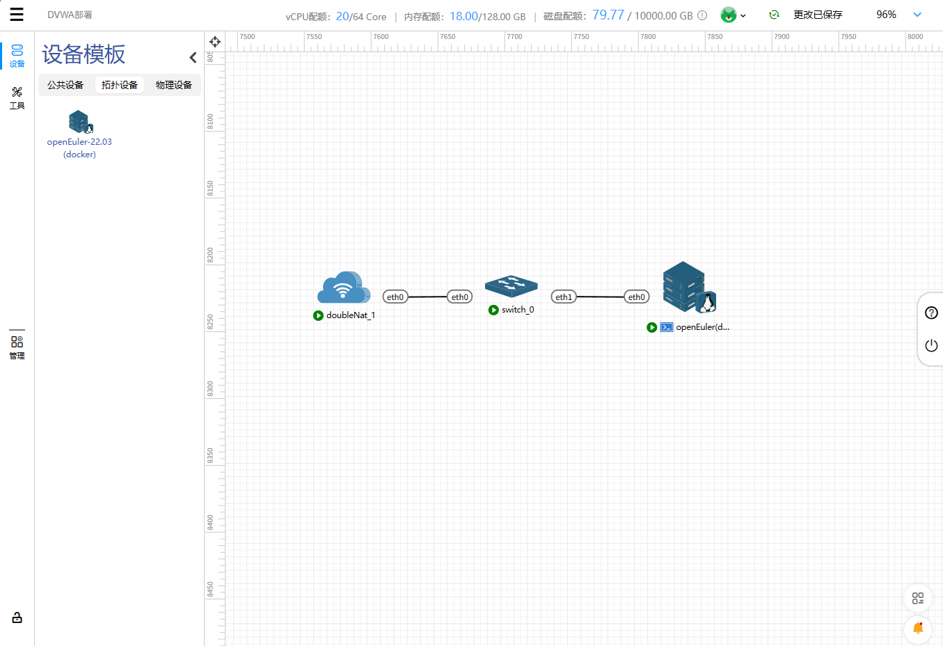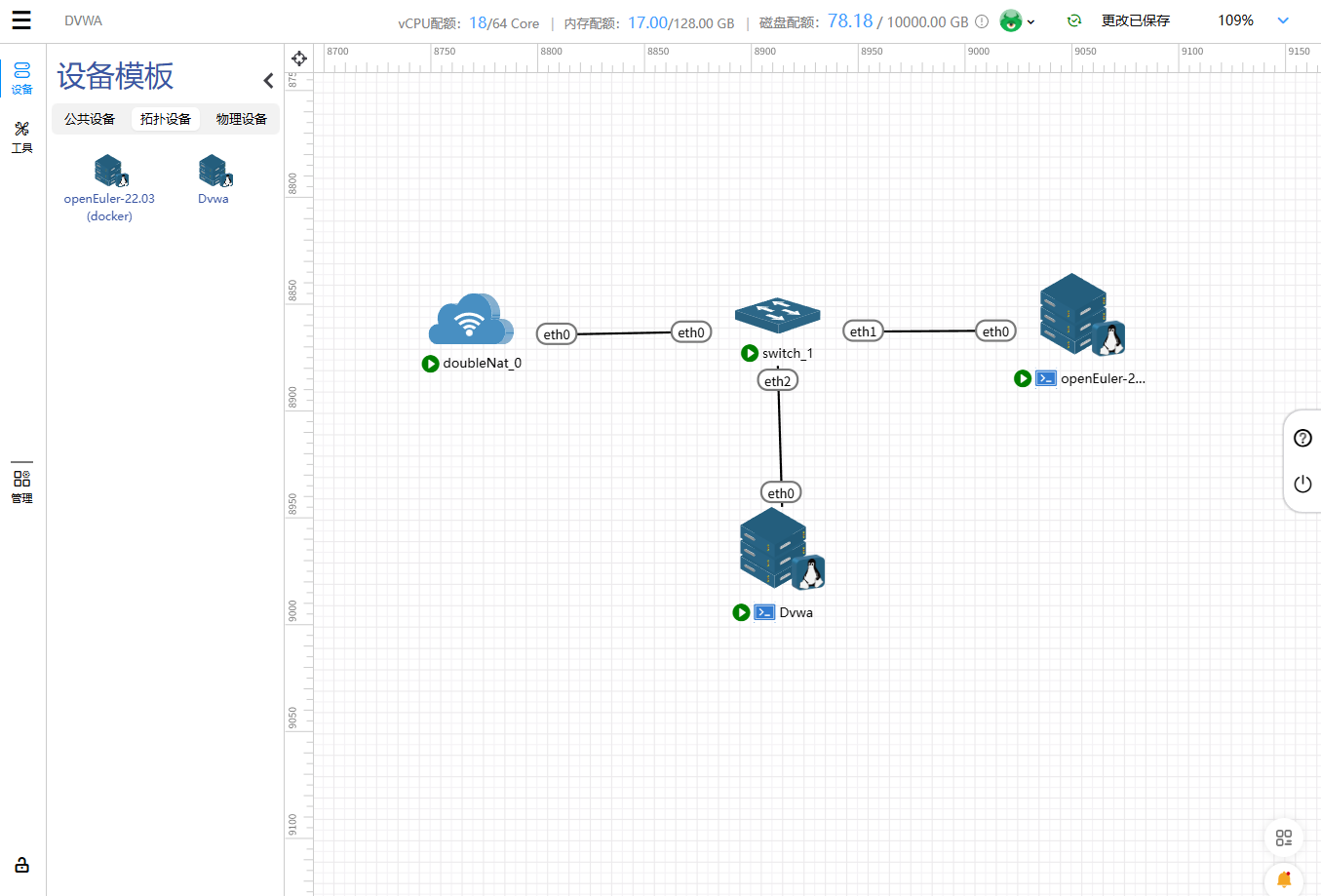 至此DVWA环境已经部署完毕,我们将已经部署好的环境转换为拓扑设备方便以后使用或者分享平台其他的用户使用。