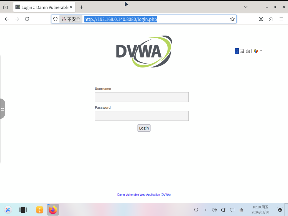 - 首次访问会进入DVWA登录页面