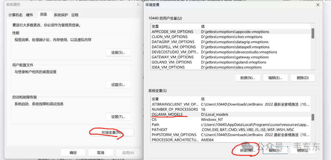 下载完成后,双击安装包进行安装。默认情况下,Ollama 会安装在 C 盘,但为了控制对 C 盘的容量挤压,建议通过在系统变量中添加 OLLAMA_MODELS 环境变量来指定模型文件的存储路径。