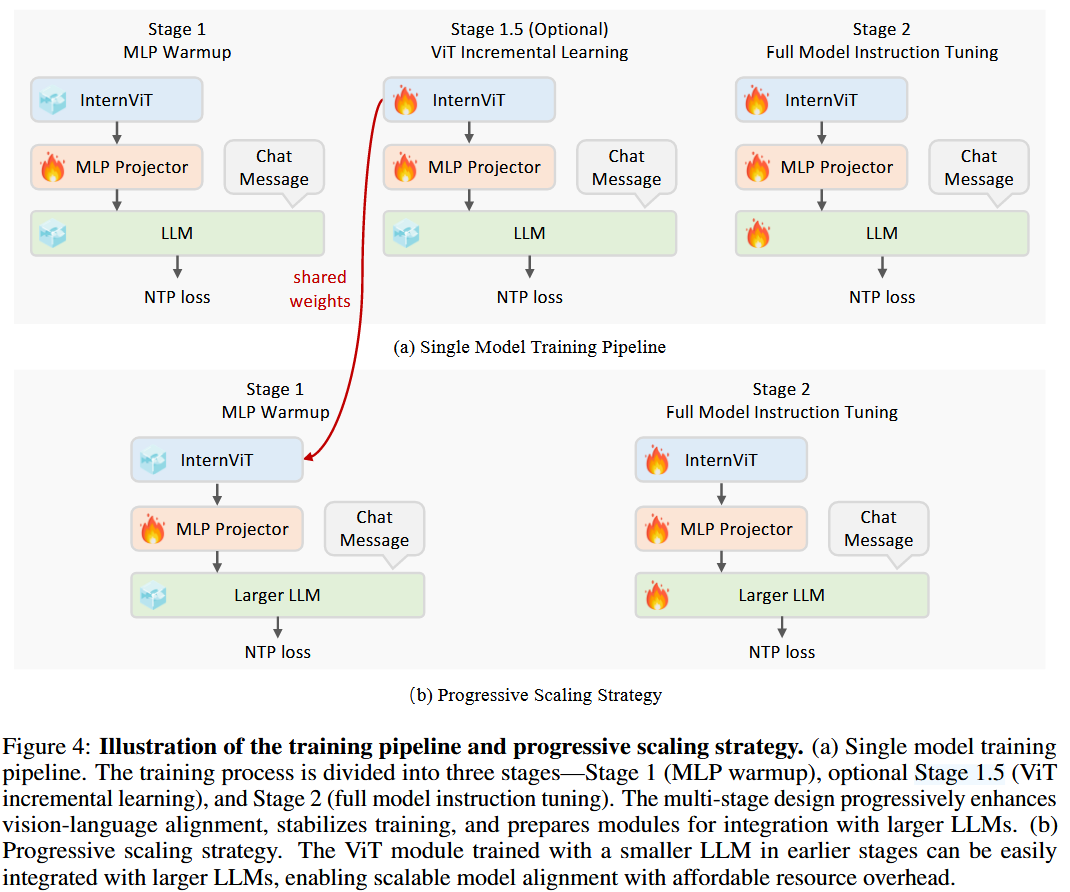 - 复用小规模下训练得到的internViT,从而节省计算资源