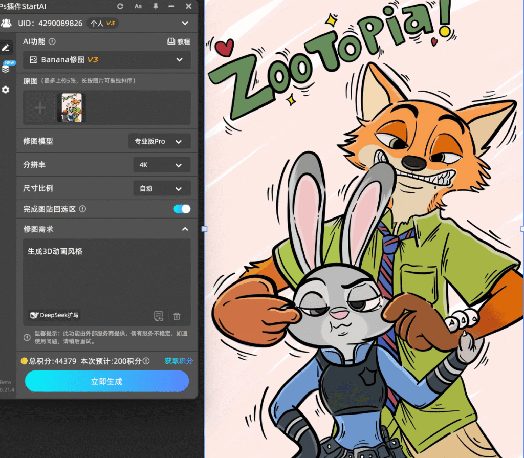 - 启动功能:用banana修图,在修图需求中写生成3D动画风格。