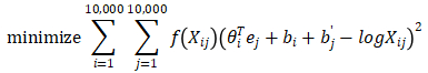 - 因为X_ij是等于0的时候,那么log0是负无穷大的,于是我们约定0log0=0,这样X_ij=0的时候,f(X_ij)=0,这样公式的和就是:上下文词和目标在规定距离内 同时出现 至少一次 的词对的和。