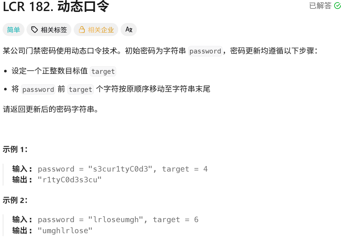 这个题我一直在想会不会用到栈队列顺序表的操作方法,但是看完老师的方法我明白了,这个题就是想把前几个元素放到字符串后面,让其构成一个新的元素。