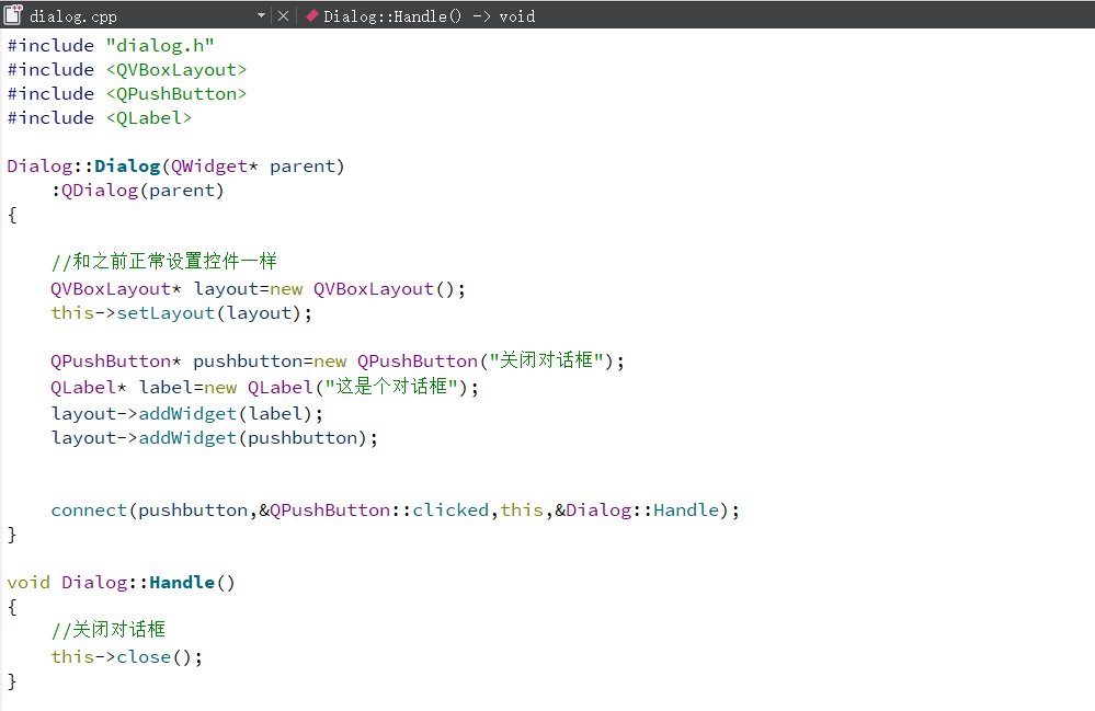 我们想要创建自定义对话框,就需要继承自QDialog创建类