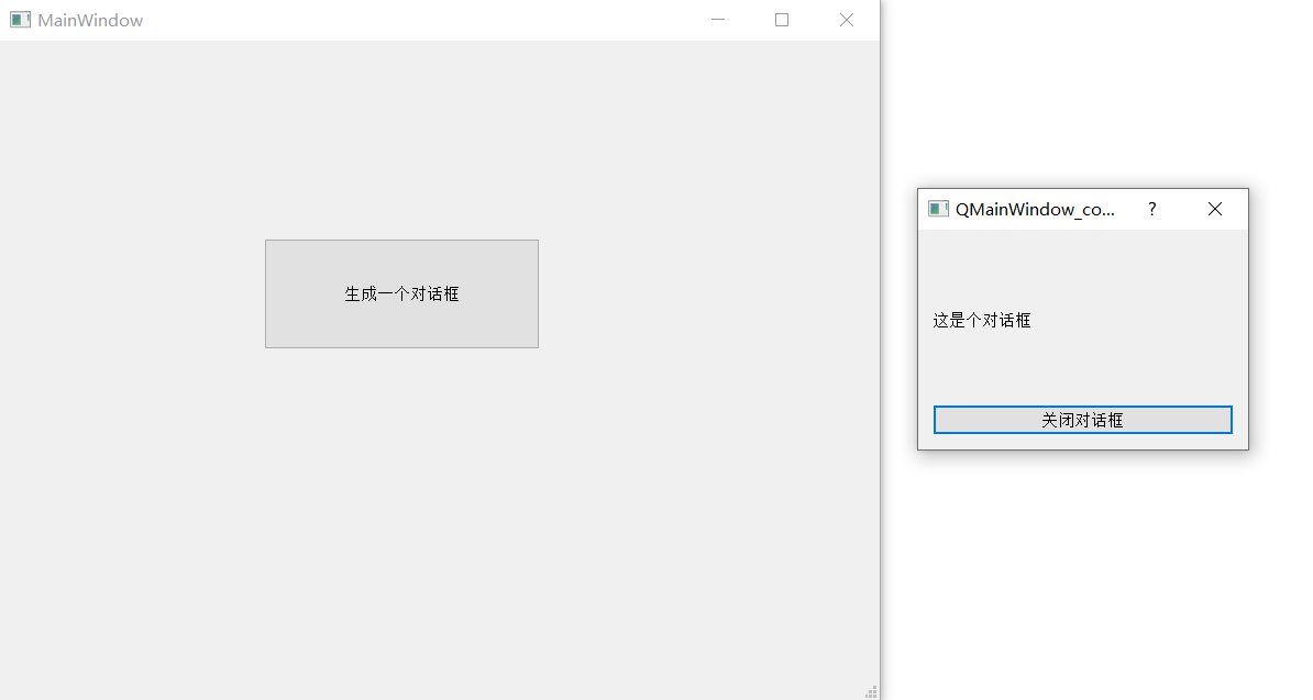 我们按了两次按钮,所以说可以看到我们界面上有两个对话框。这也就是意味着每次按下按钮都会创建一个新的QDialog对象,并显示出来,这样就导致了会出现内存泄漏。你会疑惑说不是将QDialog对象已经挂到对象树上了吗?确实会在最后QMainWindow销毁的时候