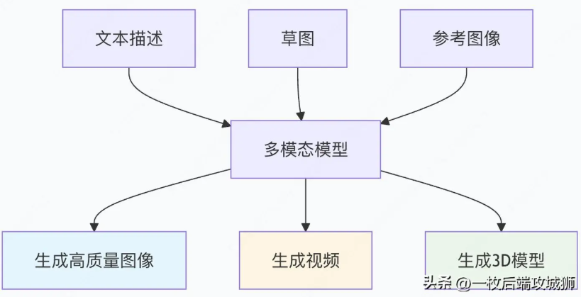 - 多模态输出:这些模型不仅可以处理多模态输入,还可以生成多模态的输出,例如从文本生成图像,或从语音生成文本。