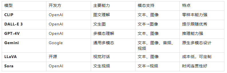 多模态模型对比表格