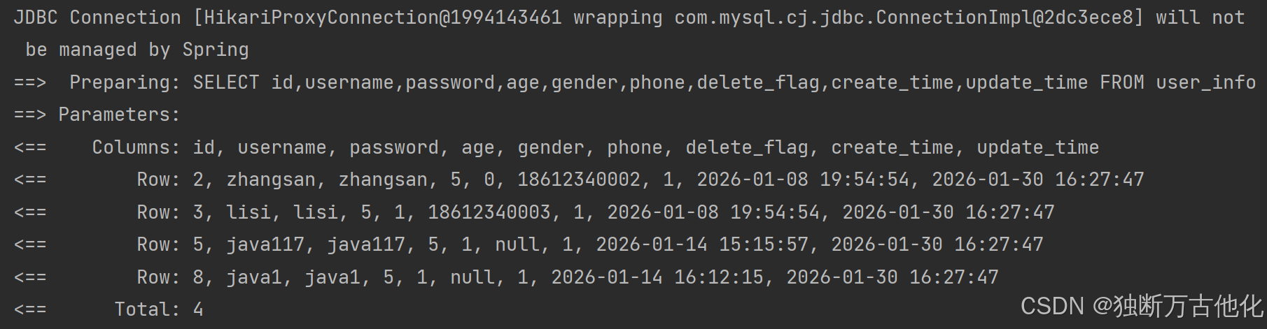userInfoMapper.queryUserByCustom2(queryWrapper).forEach(System.out::println);