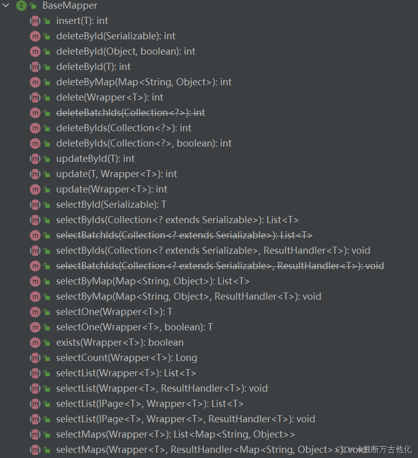 BaseMapper包含了很多方法,示例: