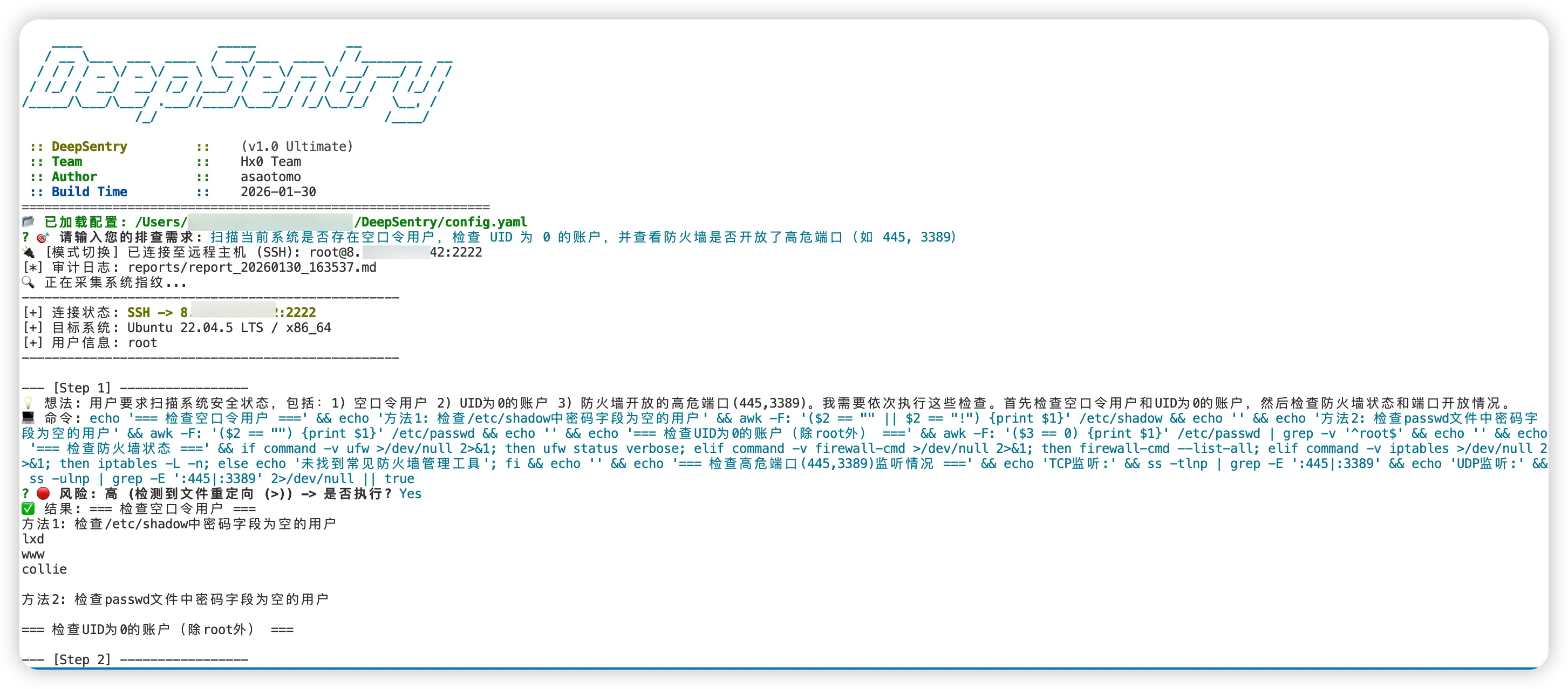 DeepSentry 是由 Hx0 战队 研发的一款智能化安全排查与运维 Agent。