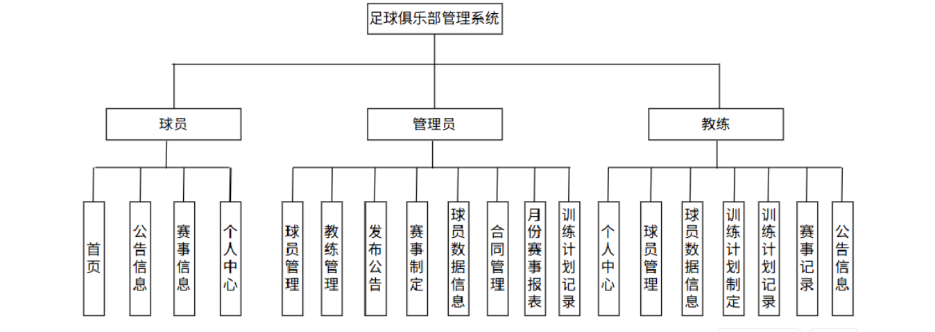 This system implements the management function of coaches and players by the club, as well as the permission verification function between different roles. It also includes functions such as event management module, contract management module, training plan management module, announcement management module, player database management module, etc.