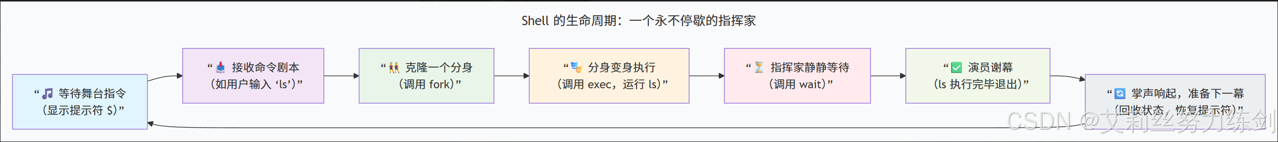 想象一下,Shell就是一个永不休息的餐厅前厅经理,它的工作就是循环处理顾客(用户)的点单(命令)。