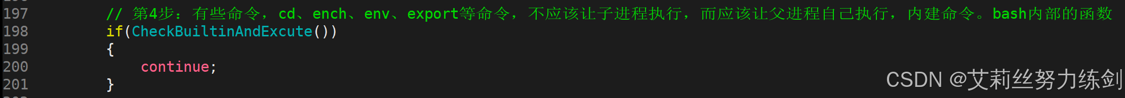 // 第4步:有些命令,cd、ench、env、export等命令,不应该让子进程执行,而应该让父进程自己执行,内建命令。bash内部的函数