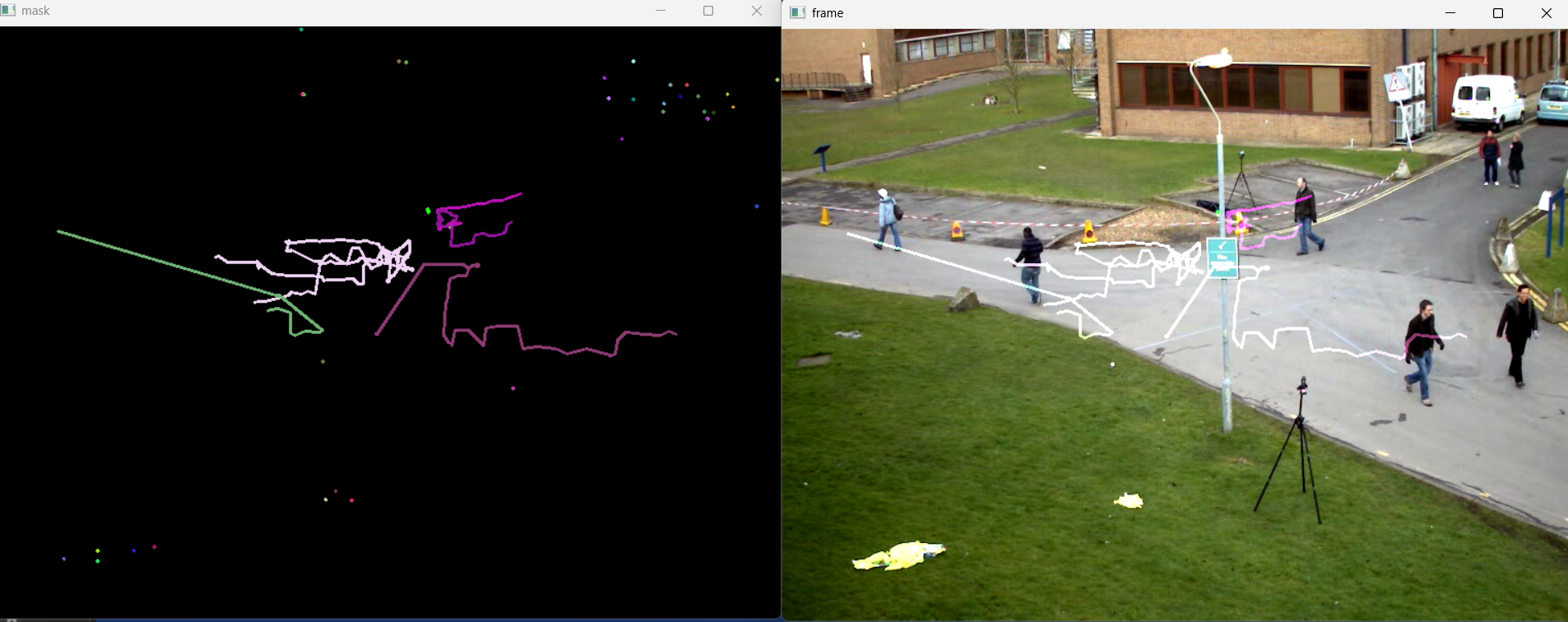p1, st, err = cv2.calcOpticalFlowPyrLK(old_gray, frame_gray, p0, None, **lk_params)
