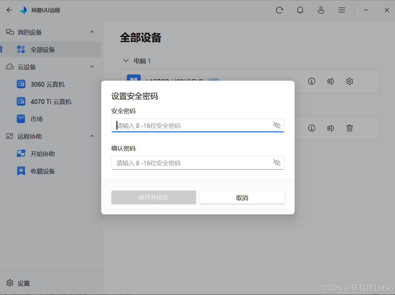 - 设置8-16位安全密码,开启"远程协助期间自动锁客户端"