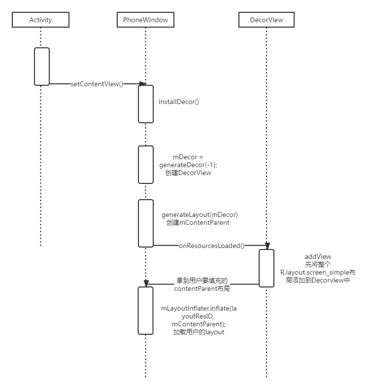 generateLayout()方法中,会将layoutResource加载到DecorView去,并最终返回一个connentParent,它是id 为ID_ANDROID_CONTENT的ViewGroup