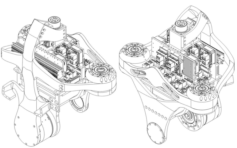 图7-8 33自由度人形机器人TOCABI胸部连杆结构(左:背部;右:正面)