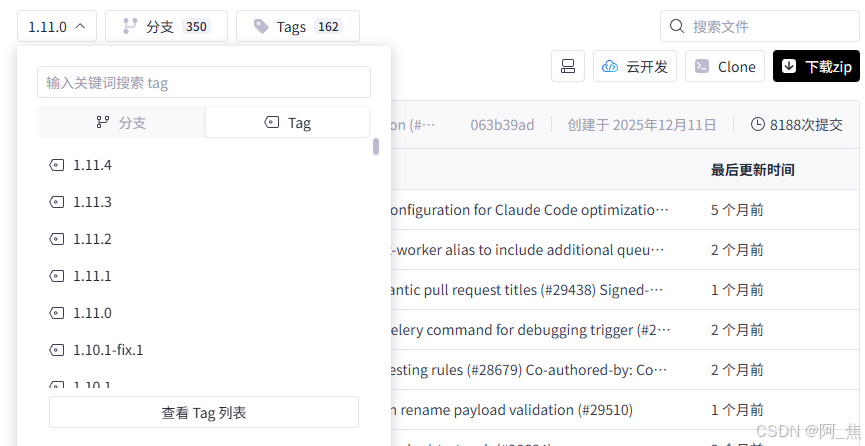 docker本地部署dify,使用zip下载了main分支下的代码,一直部署不成功,提示找不到dify1.12.0的镜像,各种头疼