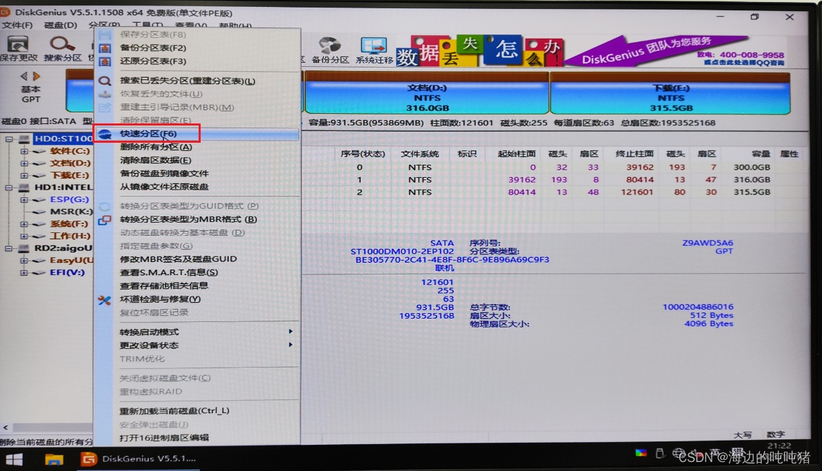 这里我们可以先用优启通进入PE系统(如何制作PE盘网上有很多教程,只要一个>16g的u盘+优启通官网下个制作的exe即可),可以看到各个硬盘都在,所以硬盘没什么问题。