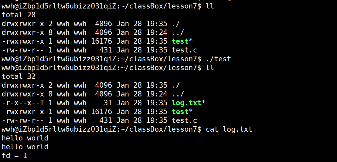 我们可以看到,我们已经向log.txt,写入了我们的字符。这就是后面我们的shell的重定向功能的基础。