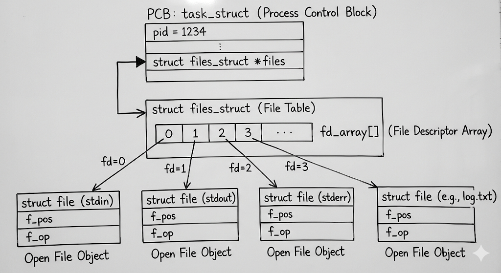 "1号?它是空的!给你吧。" - 结果:你的新文件就拿到了 fd = 1。