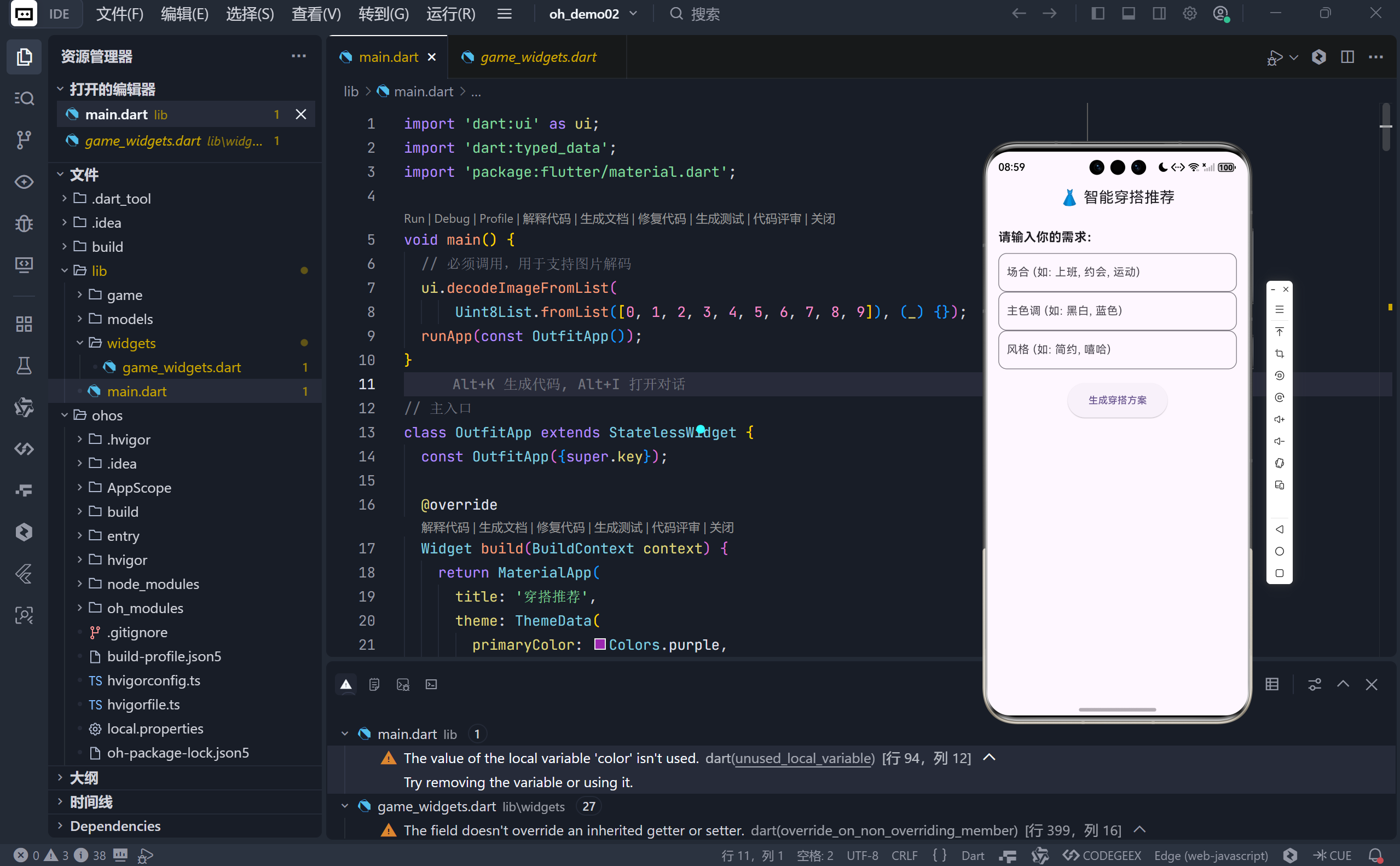 这款"智能穿搭推荐"应用虽小,却完整展示了 Flutter 在构建实用型工具应用上的强大能力:从数据建模、状态管理到 UI 美学,每一步都体现了工程与设计的平衡。它不仅解决了"今天穿什么"的实际问题,更是一个可快速迭代、易于维护的代码样板。