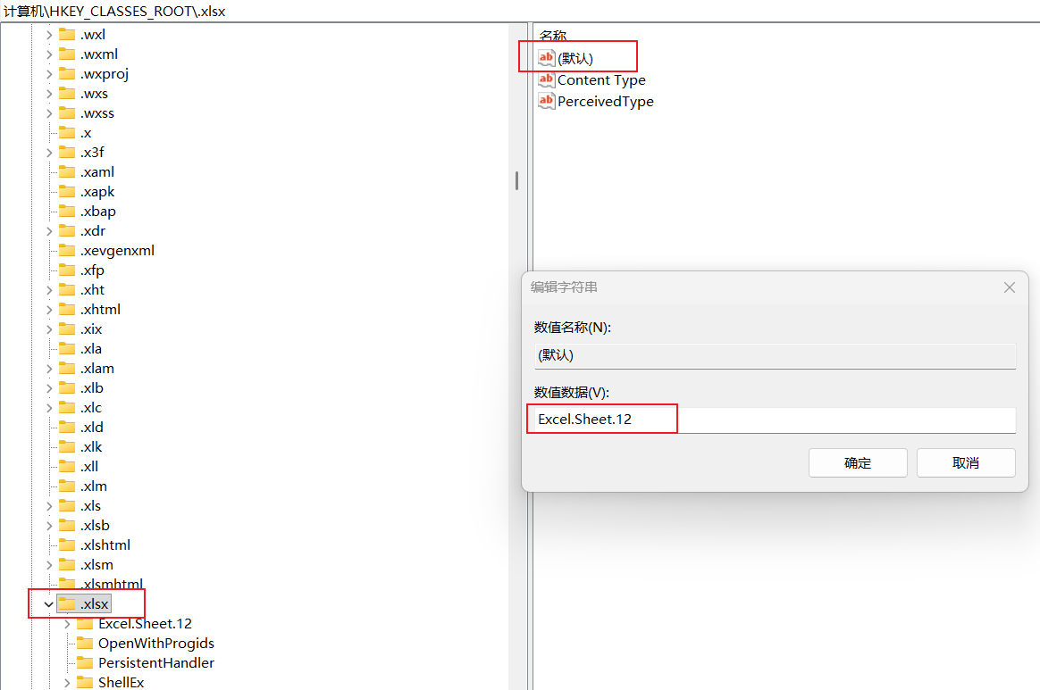 计算机\HKEY_CLASSES_ROOT\.xlsx文件 的默认值 - 然后重启