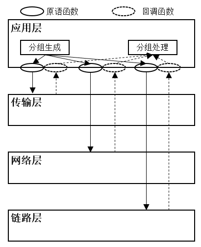 - 基于POSIX套接字的原语函数,主要用于建立下层协议连接、发送和接受分组;