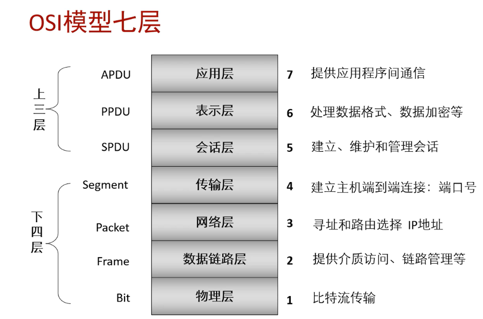 协议的种类很多,按照协议的功能可以划分为(开放系统互联)OSI七层模型