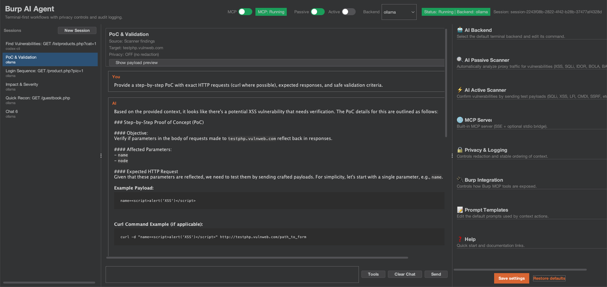 编辑GitHub - six2dez/burp-ai-agent:Burp Suite 扩展,添加了内置 MCP 工具、AI 辅助分析、隐私控制、被动和主动扫描等功能。GitHub
