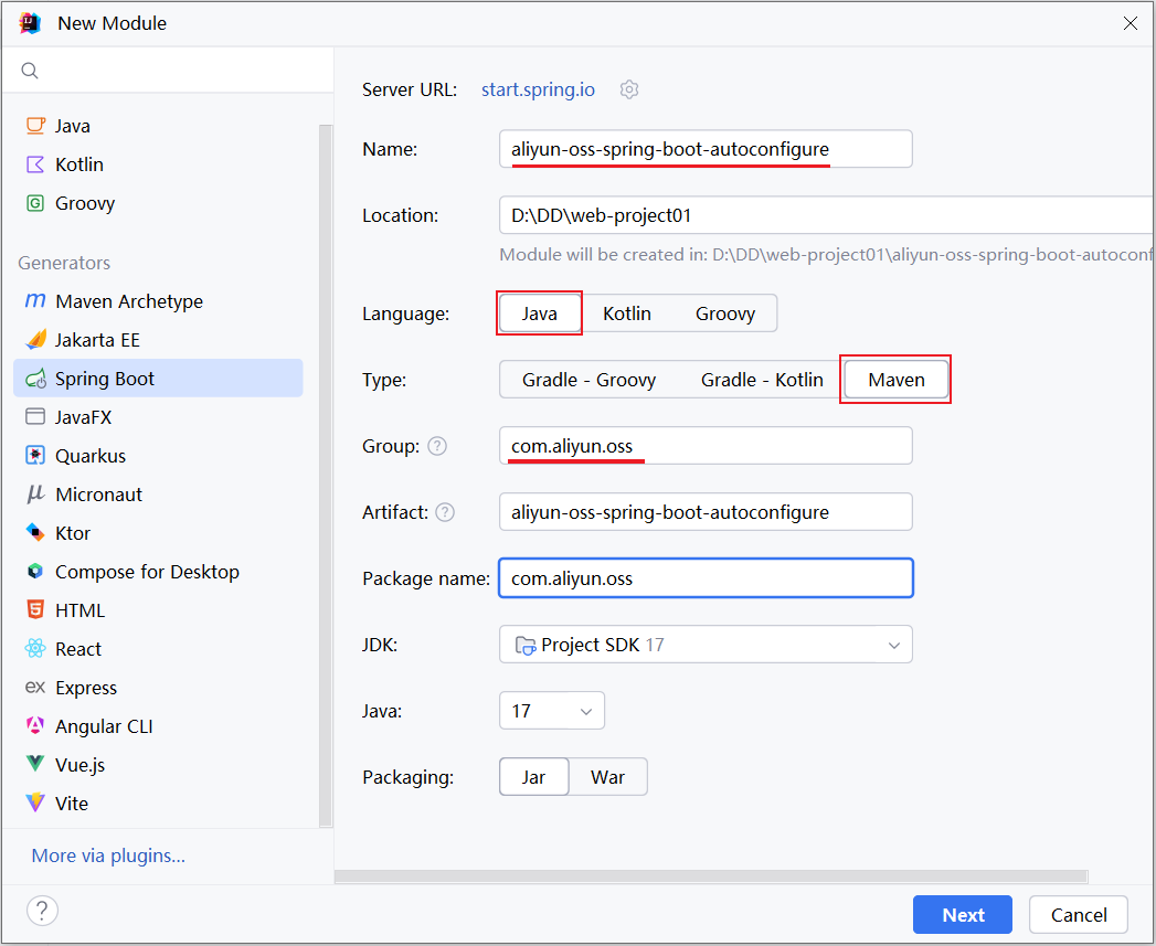 2). 创建 aliyun-oss-spring-boot-autoconfigure 模块
