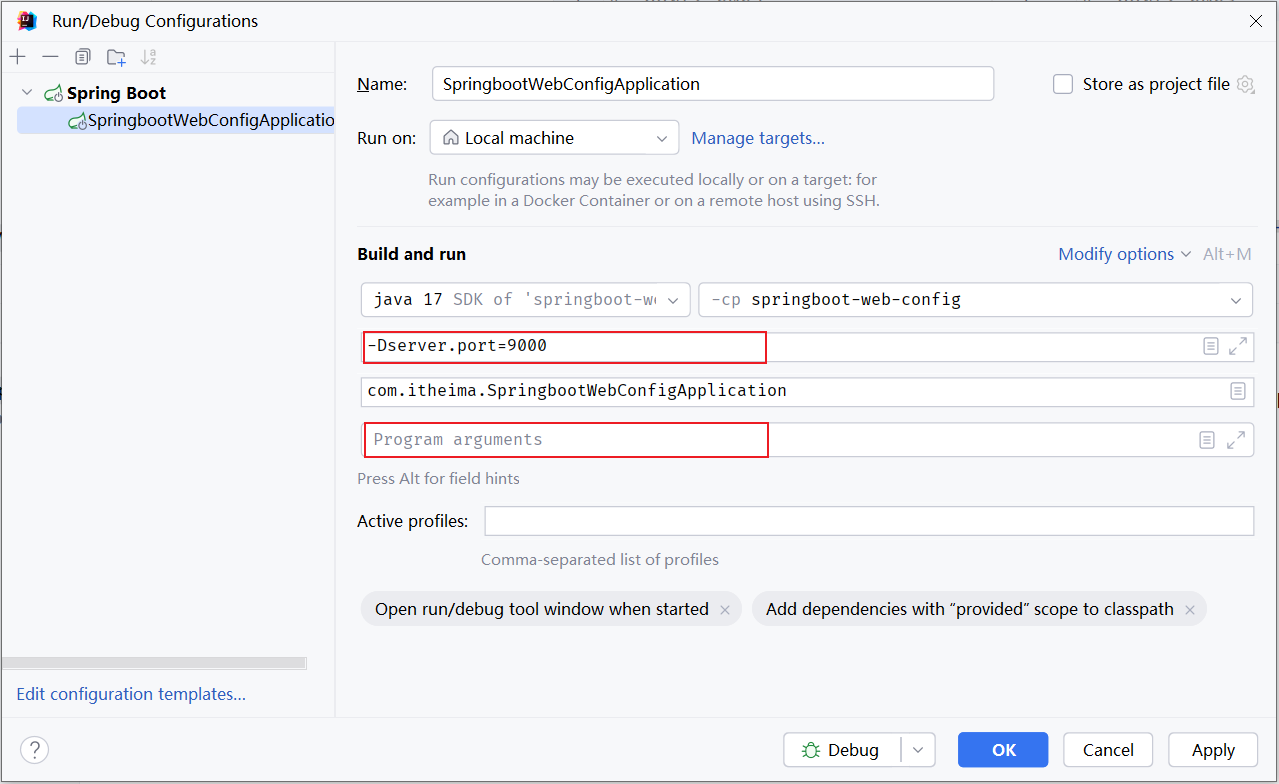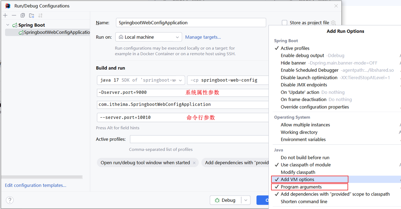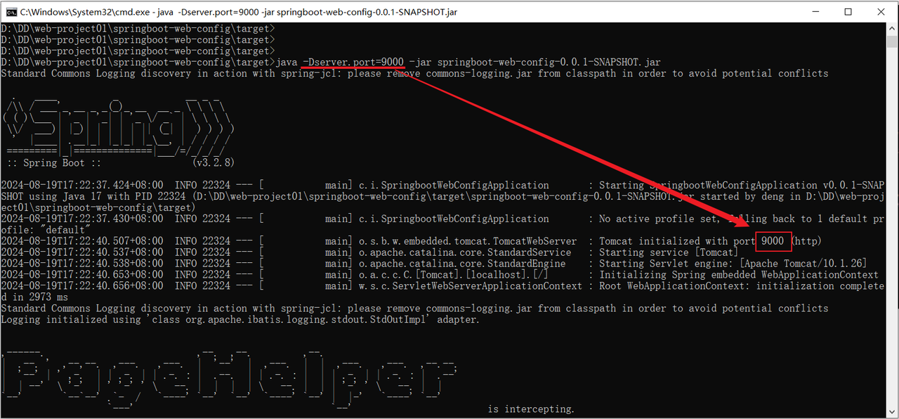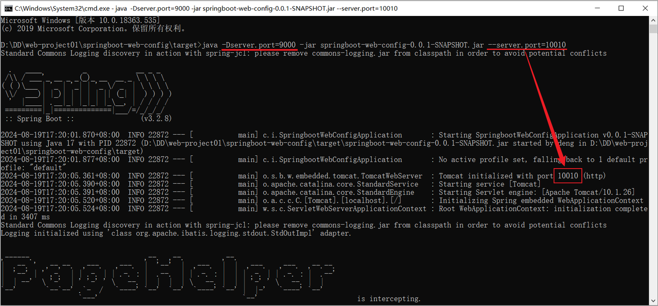 java -Dserver.port=9000 -jar XXXXX.jar --server.port=10010