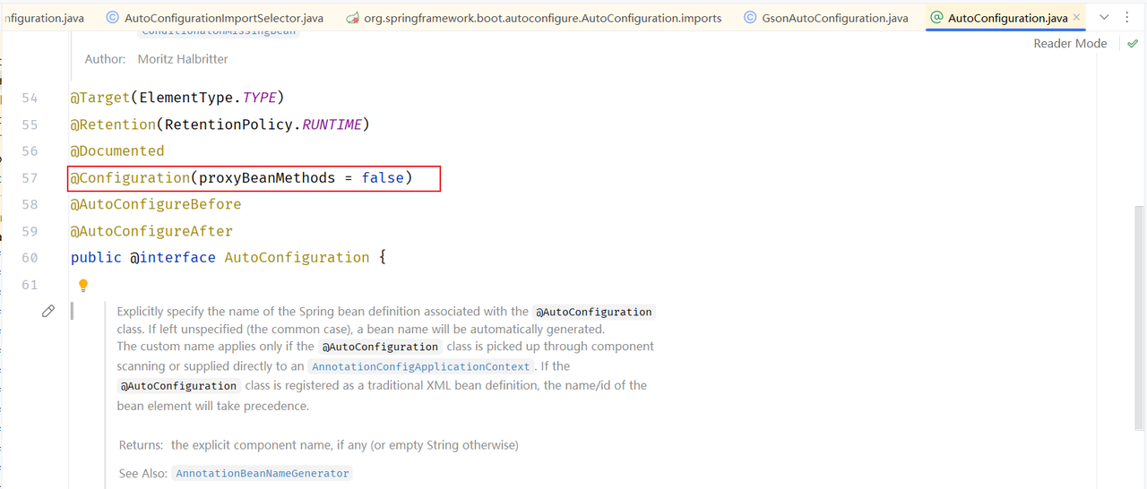 3). 既然不能用 @Component 注解声明bean,那就需要按照 starter 的定义规范,定义一个自动配置类,在自动配置类中声明bean。