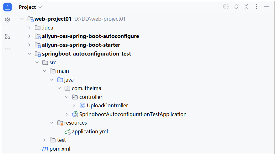 到此呢,这个 aliyun-oss-spring-boot-stater 就定义好了,哪里要想使用,就可以直接导入依赖,直接注入使用了。