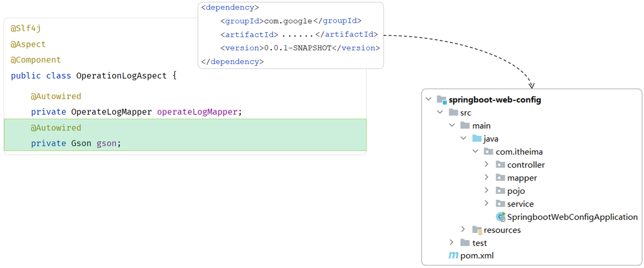 所以这个时候我们就可以制作一个公共组件(自定义starter)。starter定义好之后,将来要使用阿里云OSS进行文件上传,只需要将起步依赖引入进来之后,就可以直接注入 AliyunOSSOperator 使用了。