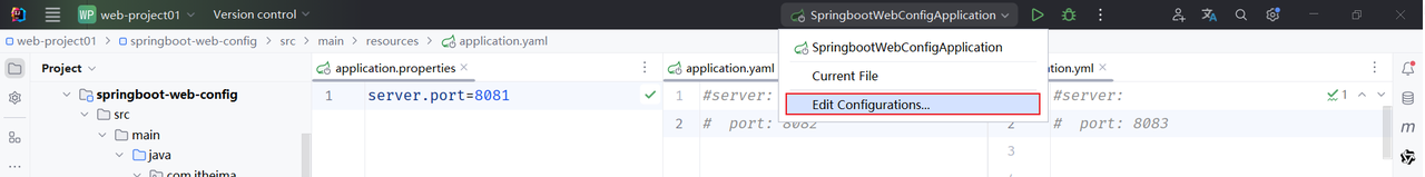 在SpringBoot项目当中,我们要想配置一个属性,可以通过这三种方式当中的任意一种来配置都可以,那么如果项目中同时存在这三种配置文件,且都配置了同一个属性,如:Tomcat端口号,到底哪一份配置文件生效呢?