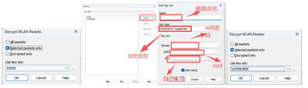 - sniffer log 中必须包含完整的EAPOL-Key交互流程,只能解密出与终端协商的包和EAPOL结束后时间点的加密包