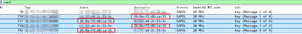 提前找出已经抓出完整eapol的设备address: 26:0a:f2:d8:ca:31