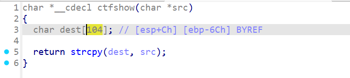 // 虽然数组定义为 104 字节,但栈偏移显示它距离 EBP 有 0x6C (108字节)