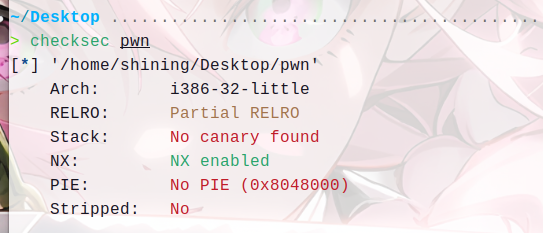 - Stack : No canary found (无栈哨兵,这是栈溢出的关键前提)