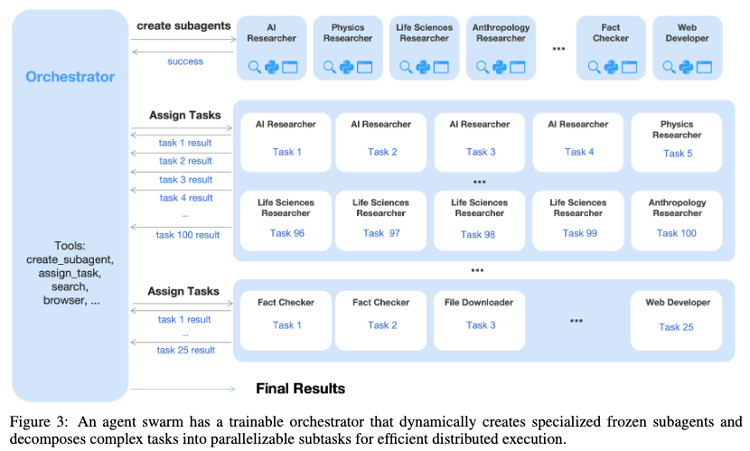 智能体架构突破:Agent Swarm 通过 PARL 框架将任务复杂度从线性扩展转为并行处理,为复杂多步骤任务提供可扩展解决方案
