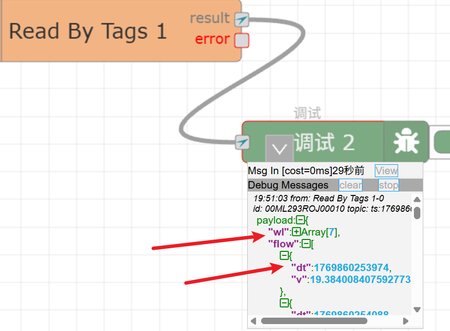 展开调试里面的消息payload,可以看到输出数据:
