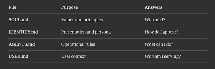 Moltbot .md 指令文件及其用途 | Alireza Rezvani 的图像 © 文件用途 回答 SOUL.md 价值观和原则