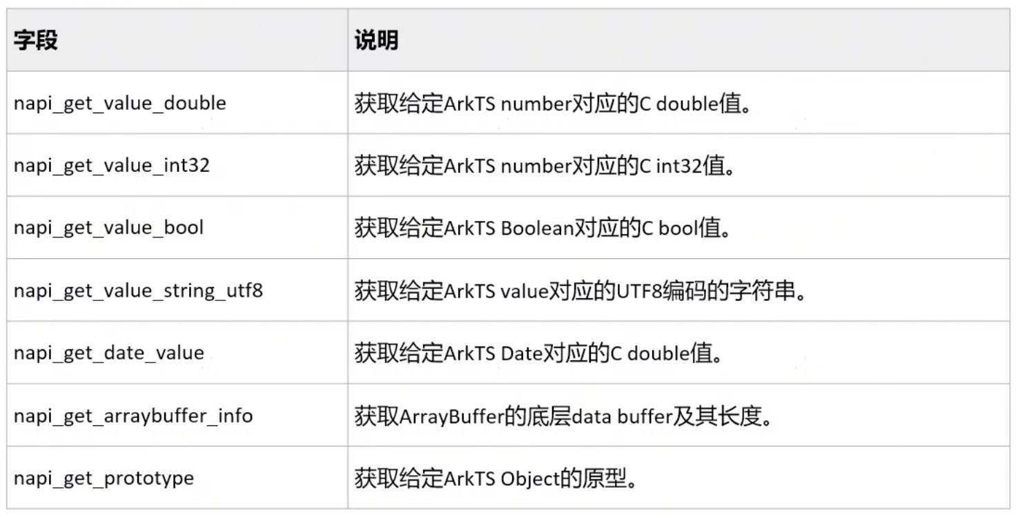 HarmonyOs Node-APl提供了一系列的接口用于将napi_value类型参数转化为C/C++标准数据类型。相关类型接口较多下面只列举部分基础数据类型相关接口。
