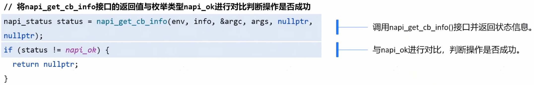 napi_get_cb_info:从给定的napi_callback_info对象中获取ArkTS侧传入参数的详细信息,如参数和this对象。