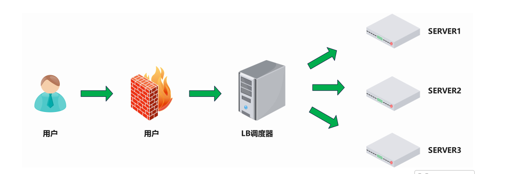 用户请求 → 负载均衡器 → [Web服务器1, Web服务器2, Web服务器
