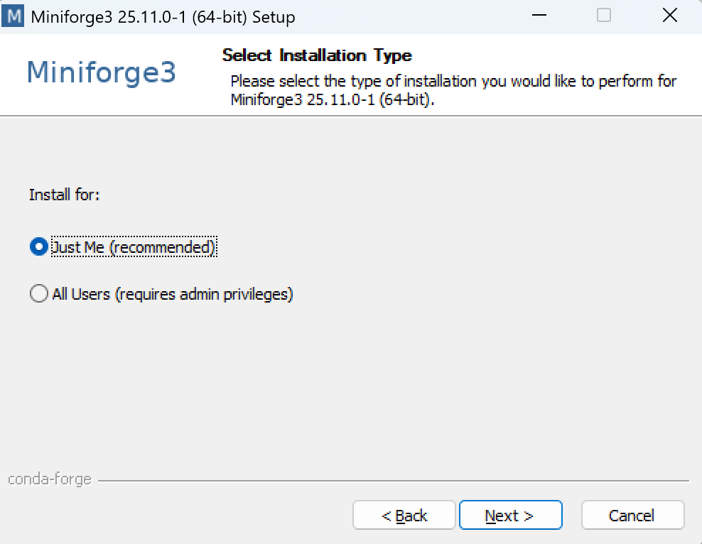 .> Miniforge 使用 conda-forge 社区维护,完全开源可用。