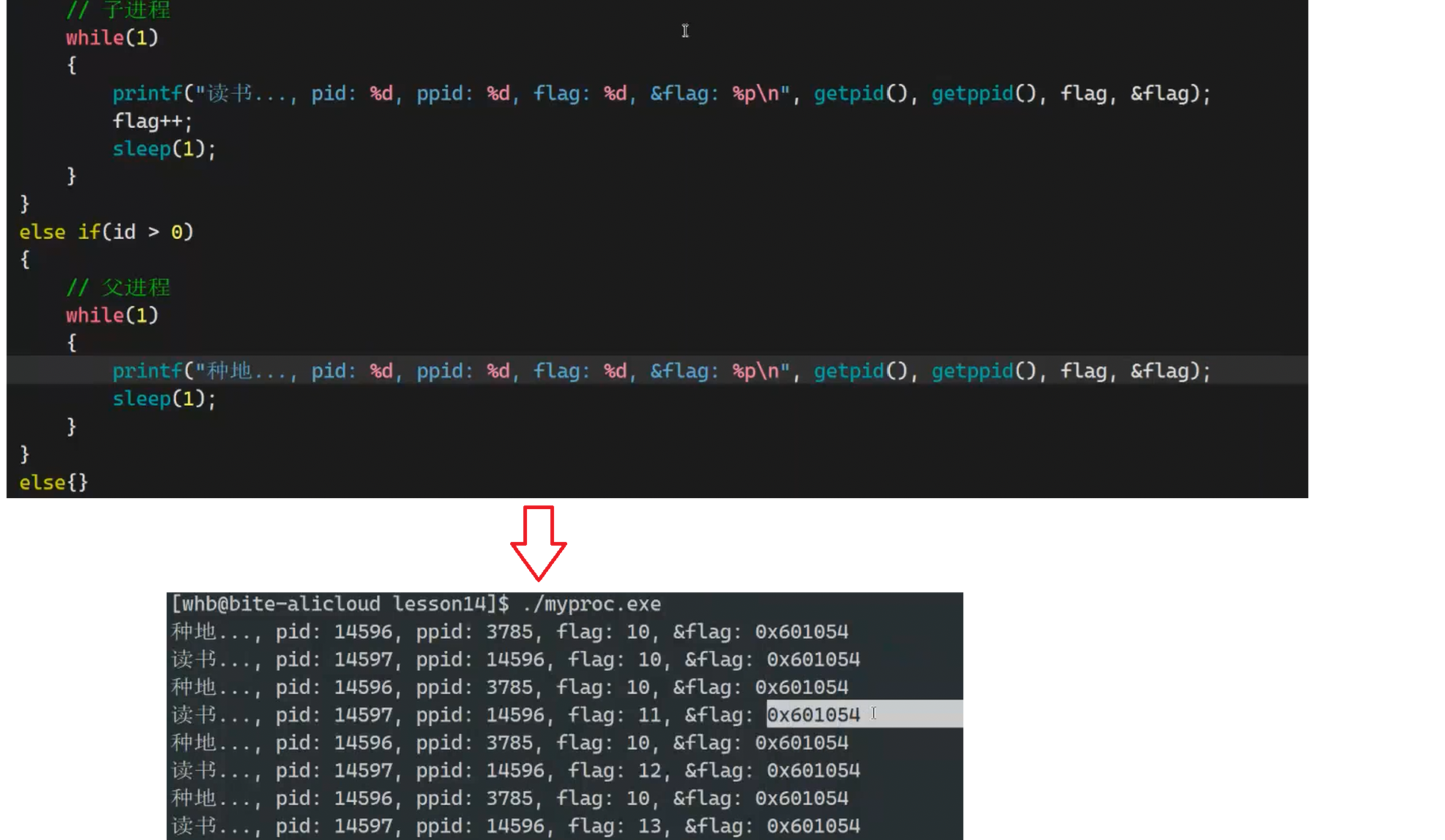 我们分别在父进程和子进程中取地址,看一下是否是一个变量